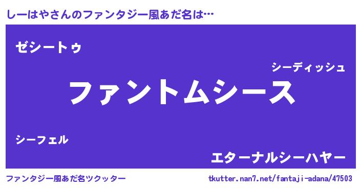 | ヒーロー風カッコイイあだ名 | 『幻影騎士シー』『最強戦士シーハヤ』 |