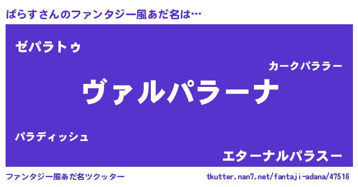 | 男性向けラノベタイトル風あだ名 | 『この素晴らしい世界にぱらすを!』 |