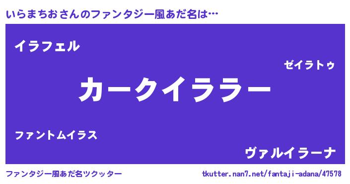 | 欧米人風あだ名 | 『いらまちお・ステッグマイヤー』 |