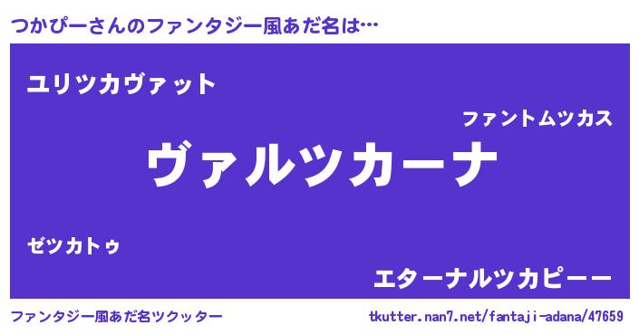| 男性向けラノベタイトル風あだ名 | 『この素晴らしい世界につかぴーを!』 |
