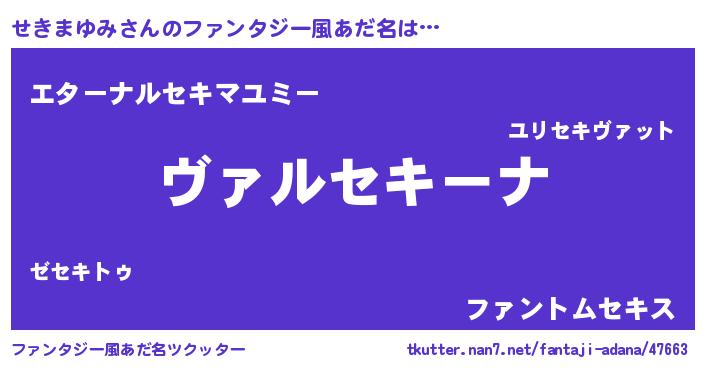 | 男性向けラノベタイトル風あだ名 | 『この素晴らしい世界にせきまゆみを!』 |
