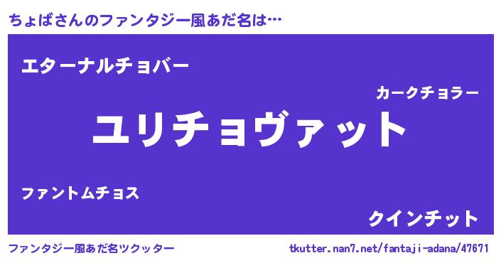 | 意味不明あだ名 | 『めかぶ科ちょば属』『自称ちょば』 |
