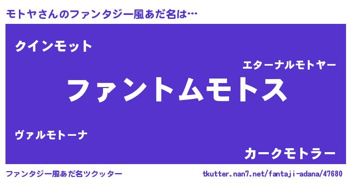 | 女子向けラノベタイトル風あだ名 | 『モトヤの卵を拾いまして』 |