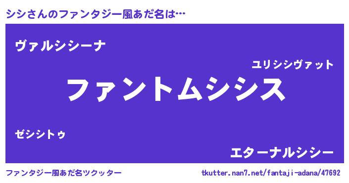 | 意味不明あだ名 | 『とにかく怪しいシシ』『自称シシ』 |