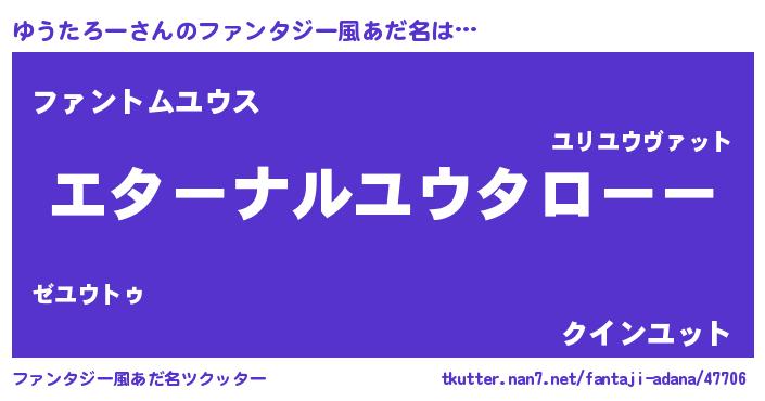 | ポケモン風あだ名 | 『ユウタダネ』『ヒユウタロー』 |