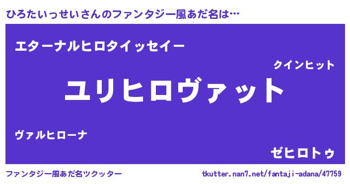 | 男性向けラノベタイトル風あだ名 | 『ひろたいっせい~年齢イコール彼女いない歴の魔法使い~』 |