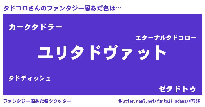 | 男性向けラノベタイトル風あだ名 | 『転生したらタドコロだった件』 |