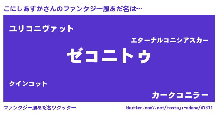 | 意味不明あだ名 | 『自称こにしあすか』 |