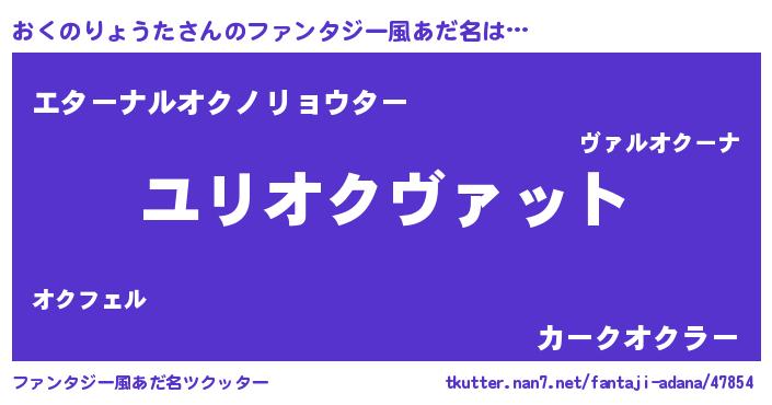 | 男性向けラノベタイトル風あだ名 | 『おくのりょうた~年齢イコール彼女いない歴の魔法使い~』 |