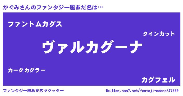 | 男性向けラノベタイトル風あだ名 | 『魔弾の王とかぐみ』 |