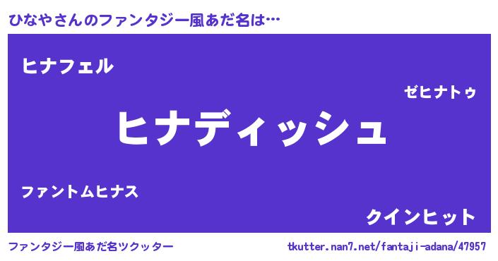 | 欧米人風あだ名 | 『ダルビッシュひなや』『マイケルひなや』 |