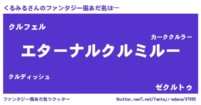 | 意味不明あだ名 | 『くるみるフォーエバー』『自称くるみる』 |