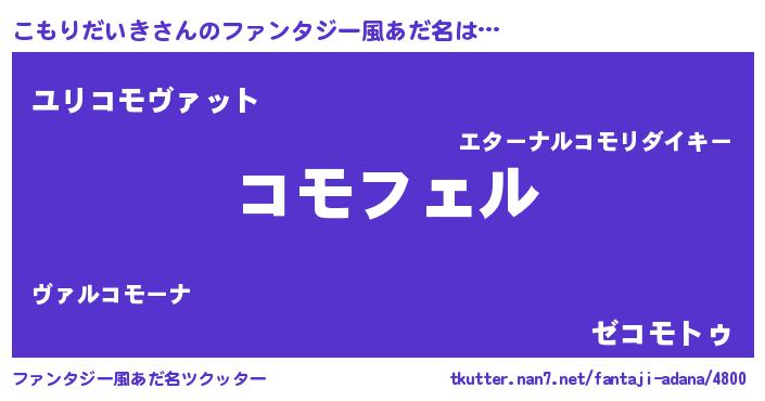 女子向けラノベタイトル風あだ名 | 『誰かこのこもりだいきを説明してください! ~契約から始まるウェディング~』 |