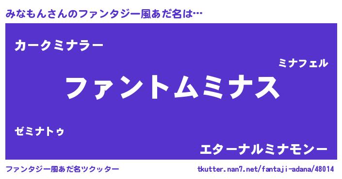 | ヒーロー風カッコイイあだ名 | 『暗黒騎士ミナ』『ウルトラみなもんマン』 |