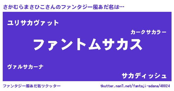 | ヒーロー風カッコイイあだ名 | 『魔戒騎士サカ』『ネオサカムラマサヒコ』 |