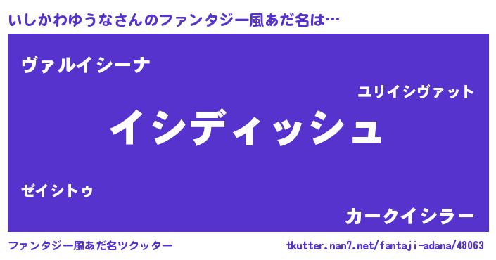 | ヒーロー風カッコイイあだ名 | 『ネオイシカワユウナ』『仮面イシダー』 |