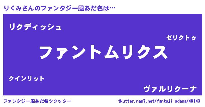 | 男性向けラノベタイトル風あだ名 | 『りくみの嫁は女の子じゃないと思った?』 |