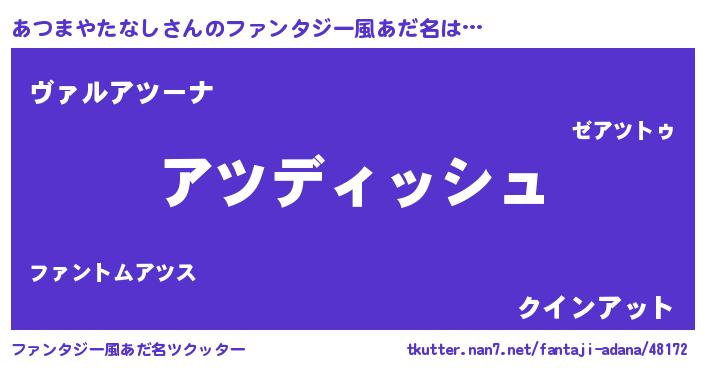 | ヒーロー風カッコイイあだ名 | 『ネオアツマヤタナシ』『仮面アツダー』 |