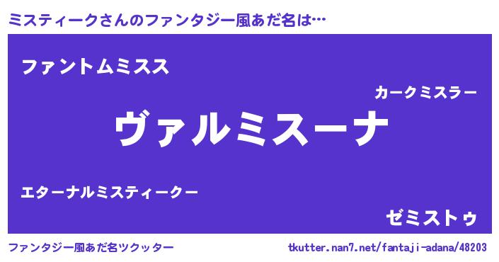| 意味不明あだ名 | 『住所不定無職ミスティーク(47歳)』 |