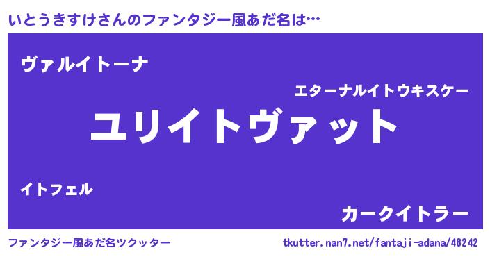 | 男性向けラノベタイトル風あだ名 | 『転生したらいとうきすけだった件』 |