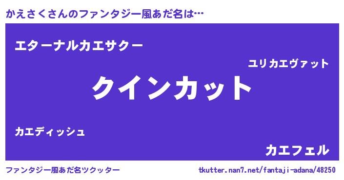 | 男性向けラノベタイトル風あだ名 | 『ノーゲーム・ノーカエサク』 |