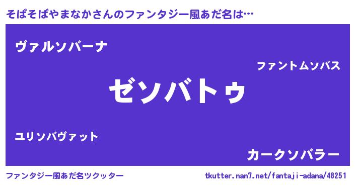 | 男性向けラノベタイトル風あだ名 | 『Re:そばそばやまなかから始める異世界生活』 |
