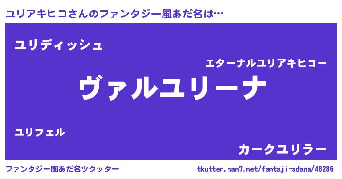 | 男性向けラノベタイトル風あだ名 | 『この素晴らしい世界にユリアキヒコを!』 |