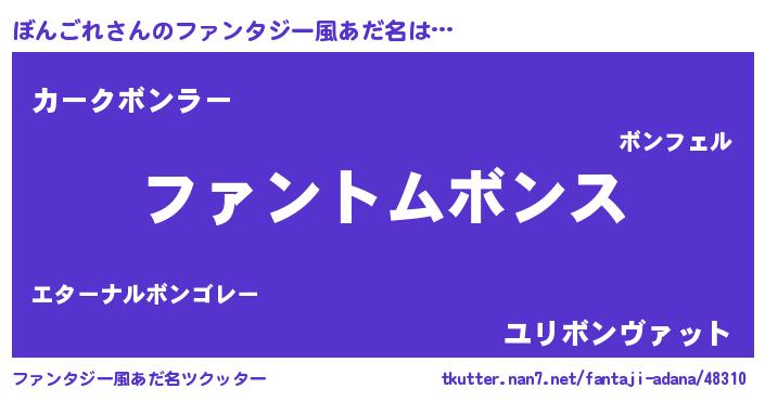 | ポケモン風あだ名 | 『ヒボンゴレ』『ボンゴンZ』 |