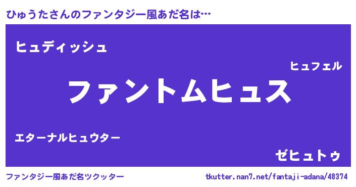 | ポケモン風あだ名 | 『ヒュゴンZ』『ヒヒュウタ』 |