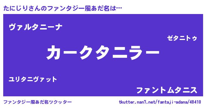 | 男性向けラノベタイトル風あだ名 | 『緋弾のタニジリ』『魔弾の王とたにじり』 |
