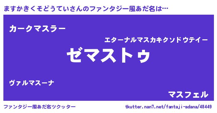 | 意味不明あだ名 | 『自称ますかきくそどうてい』 |