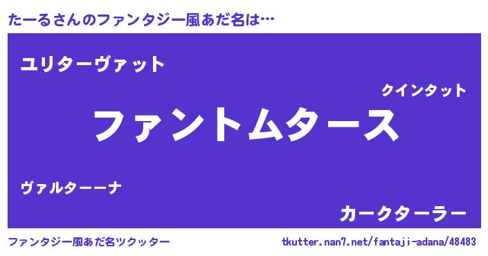 | 女子向けラノベタイトル風あだ名 | 『たーる様がみてる』『死神たーるの再婚』 |