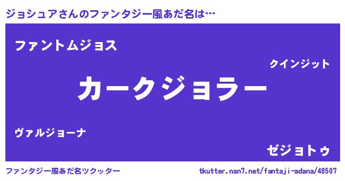 | 男性向けラノベタイトル風あだ名 | 『うちのジョシュアが世界を掌握している!』 |