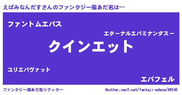 | 男性向けラノベタイトル風あだ名 | 『おまえをオタクにしてやるから、俺をえぱみなんだすにしてくれ! 』 |