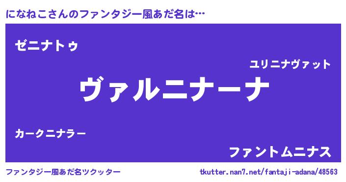 | 男性向けラノベタイトル風あだ名 | 『この素晴らしい世界にになねこを!』 |