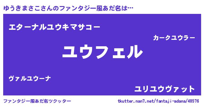 | 男性向けラノベタイトル風あだ名 | 『ユウキマサコアートオンライン』 |