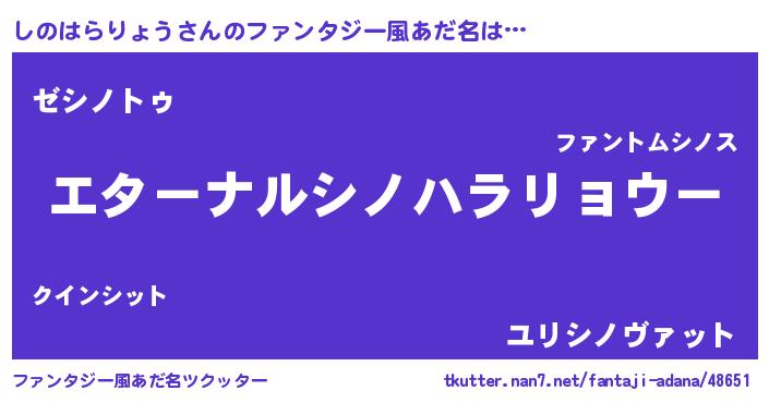 | 男性向けラノベタイトル風あだ名 | 『やはりしのはらりょうの青春ラブコメはまちがっている 』 |
