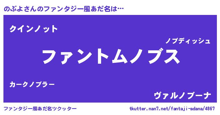 | 胡散臭い通販商品みたいなあだ名 | 『信頼と実績のペンダント…その名も「のぶよ」』 |