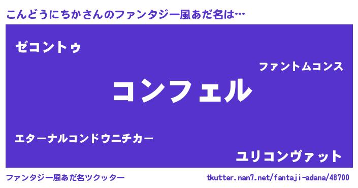 | 胡散臭い通販商品みたいなあだ名 | 『必ず成功するブレスレット…その名も「こんどうにちか」』 |