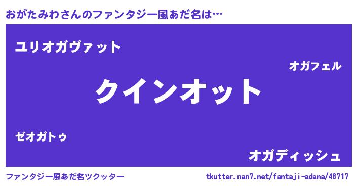 | 男性向けラノベタイトル風あだ名 | 『おまえをオタクにしてやるから、俺をおがたみわにしてくれ! 』 |
