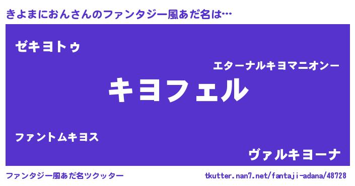 | 胡散臭い通販商品みたいなあだ名 | 『モテモテ間違いなし霊験あらたかなお札…その名も「きよまにおん」』 |