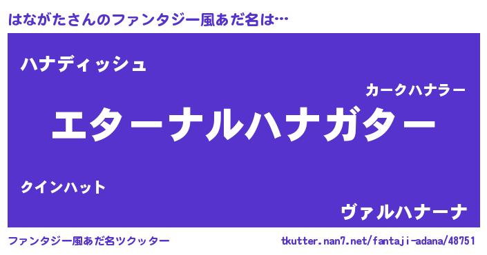 | ヒーロー風カッコイイあだ名 | 『ウルトラはながたマン』『ネオハナガタ』 |