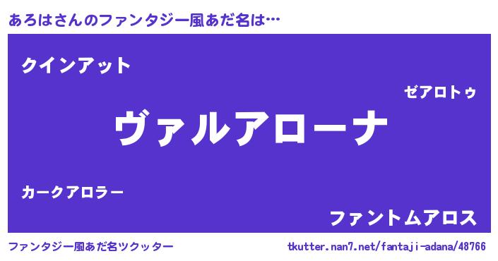 | 男性向けラノベタイトル風あだ名 | 『この素晴らしい世界にあろはを!』 |