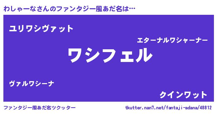 | 男性向けラノベタイトル風あだ名 | 『ワシャーナアートオンライン』 |