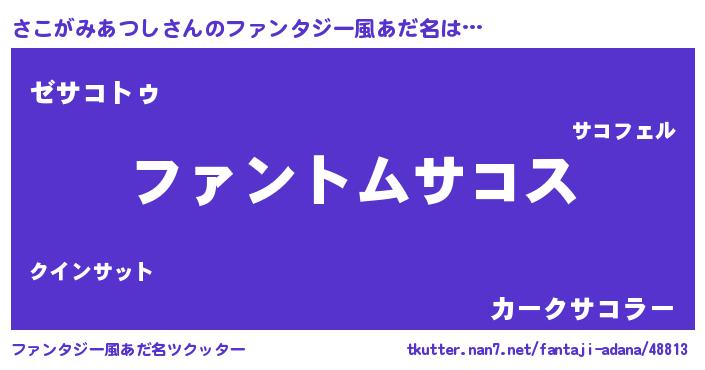 | ポケモン風あだ名 | 『ヒサコガミアツシ』『サコセウス』 |