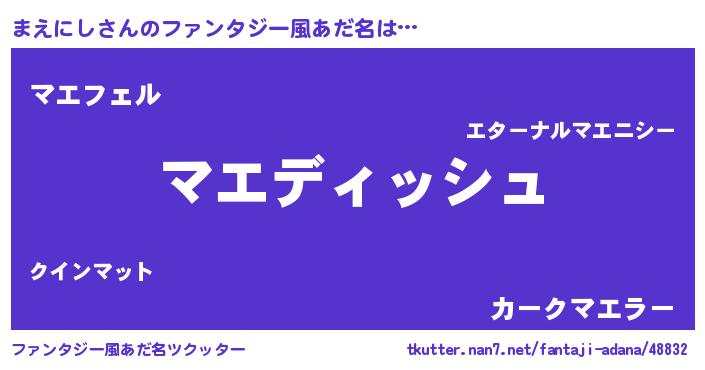 | ヒーロー風カッコイイあだ名 | 『ネオマエニシ』『スーパーマエニシ』 |
