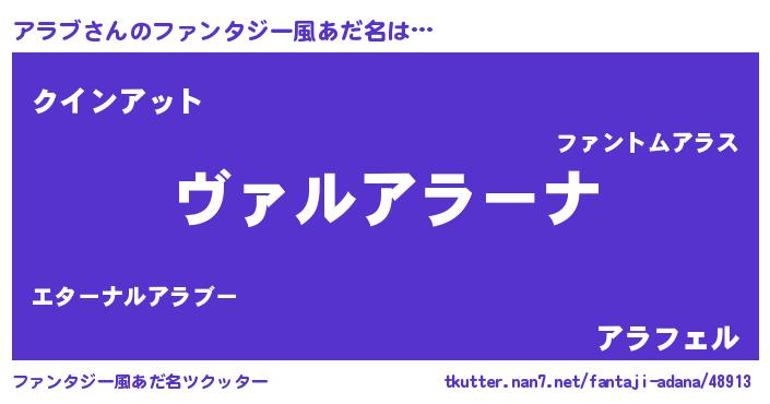 | 男性向けラノベタイトル風あだ名 | 『この素晴らしい世界にアラブを!』 |