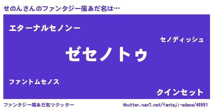 | 男性向けラノベタイトル風あだ名 | 『Re:せのんから始める異世界生活』 |