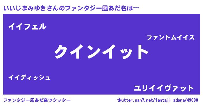 | 男性向けラノベタイトル風あだ名 | 『おまえをオタクにしてやるから、俺をいいじまみゆきにしてくれ! 』 |