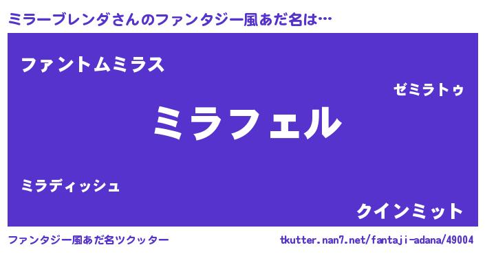 | ポケモン風あだ名 | 『ミラチュウ』『ヒミラーブレンダ』 |